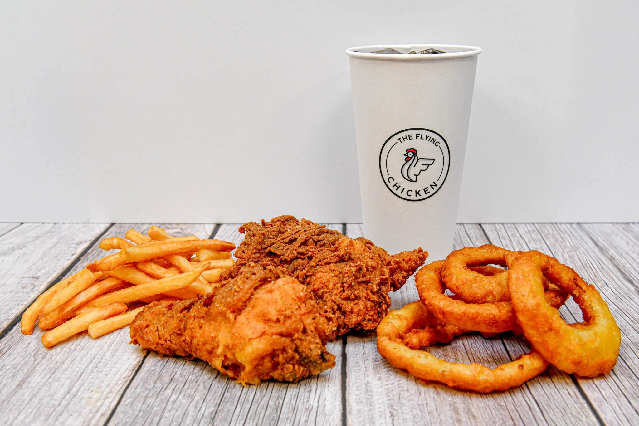 “Chicken was delicious and very juicy! Not like your averaged frozen tenders thrown in a fryer. Fries were Excellent. I tried three of the sauces. I can’t wait to try the others. Amazing flavor. I will definitely be back and would recommend the flying chicken to anyone that wants more than the same old average frozen chicken tenders thrown in a fryer”